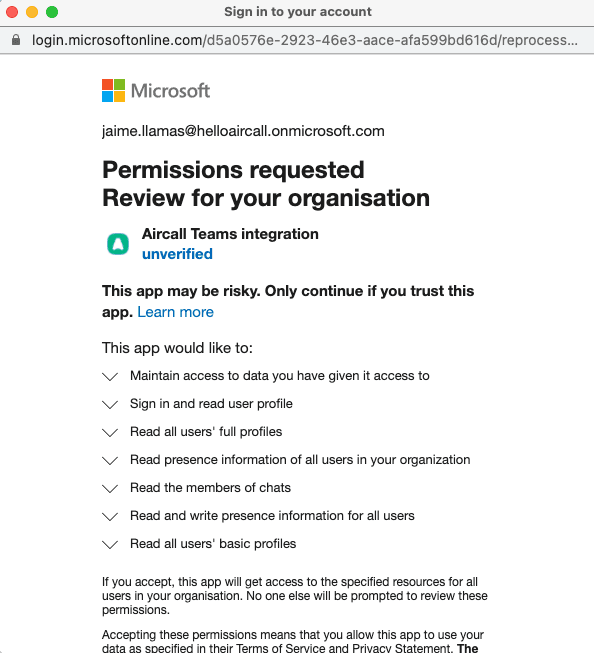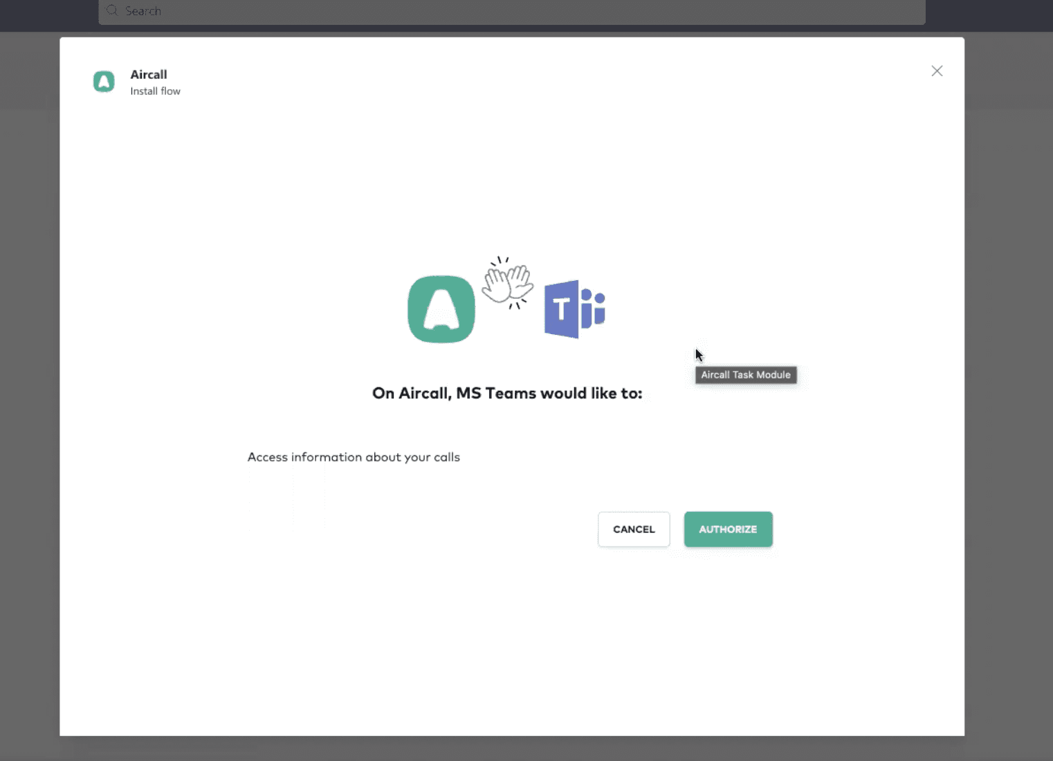 Autorisieren Sie Microsoft Teams, auf Ihr Aircall-Konto zuzugreifen.