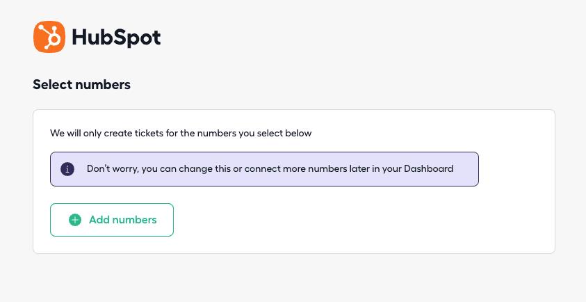 Achtung: Sie können diesen Schritt bei Bedarf überspringen, aber mindestens eine Nummer muss verknüpft sein, damit Anrufaktivitäten in HubSpot protokolliert werden. Sie können Nummern später im Aircall Dashboard hinzufügen oder entfernen. Für eine Schritt-für-Schritt-Anleitung siehe Zuweisen Ihrer Telefonnummer zur Integration.