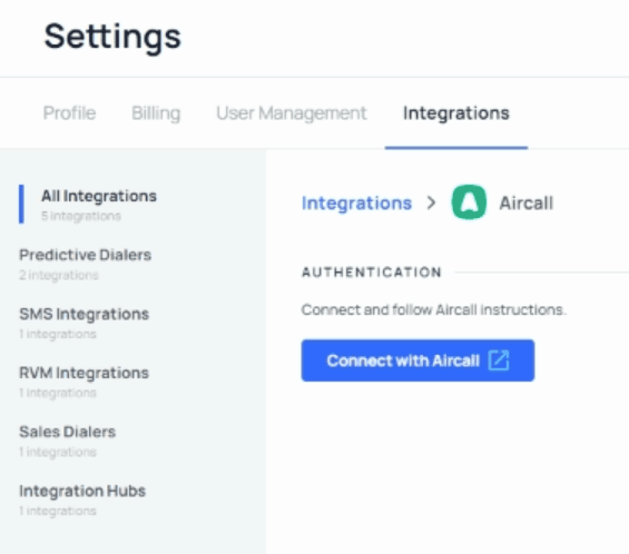Die REISift-Integration ermöglicht es Aircall-Benutzern, Anrufaktivitäten automatisch zu protokollieren, Kontaktdetails abzurufen und Anrufe direkt aus REISift zu tätigen. Befolgen Sie die untenstehenden Schritte, um die Integration zu installieren, zu konfigurieren und zu verwenden. Stellen Sie sicher, dass Sie ein Admin in Aircall sind und Zugriff auf REISift haben.