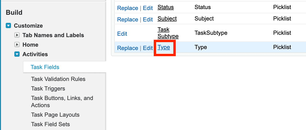 Bei der Konfiguration Ihrer Aircall Salesforce-Integration ist es wichtig, sicherzustellen, dass die richtigen Einstellungen für das Typ-Feld in Salesforce ausgewählt sind, da Anrufe sonst nicht protokolliert werden. Sie müssen die korrekte Feldebene-Sicherheit für dieses Feld einstellen und es zu Ihrem Aufgaben-Seitenlayout hinzufügen. Folgen Sie den untenstehenden Schritten für Salesforce Lightning oder Salesforce Classic, um sicherzustellen, dass alles korrekt eingerichtet ist.