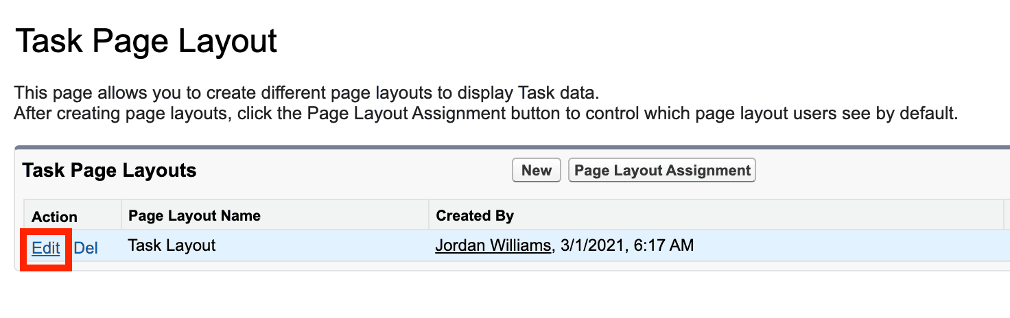- Klicken Sie auf Bearbeiten für Ihr Aufgabenlayout.