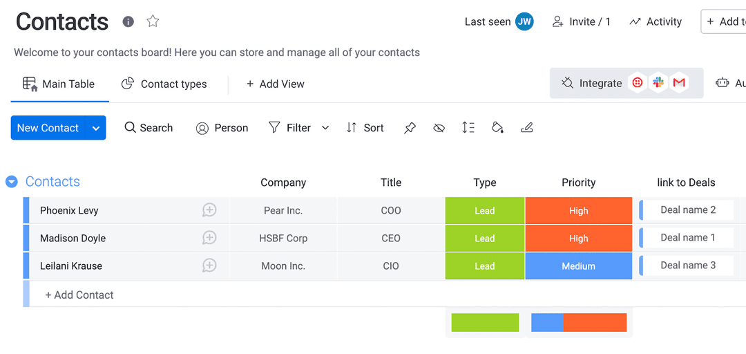 💡Wenn Sie monday.com als CRM-Lösung verwenden möchten, empfehlen wir die Verwendung der CRM-Vorlage. Diese Vorlage enthält ein Kontakt-Board.