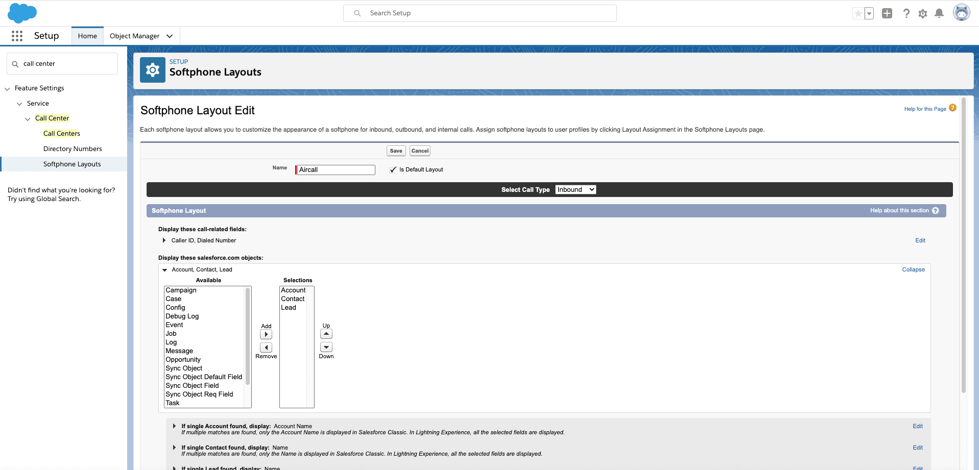 In diesen Fällen überprüfen Sie, ob das Objekt zu Ihrem Softphone Layout hinzugefügt wurde, damit Salesforce Click to Dial aktiviert ist.