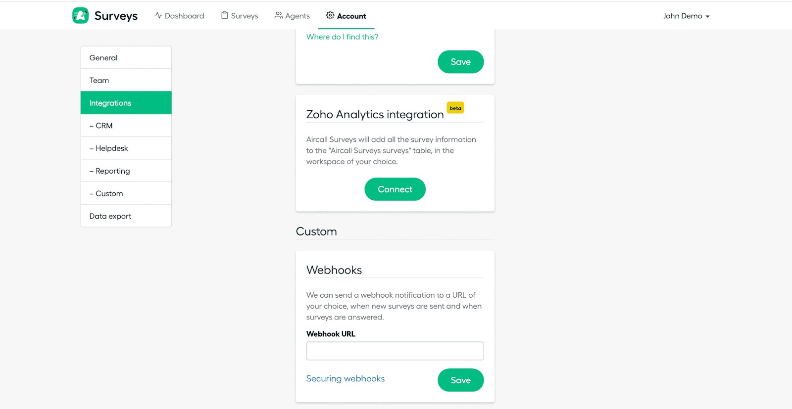 - Protokollieren Sie Umfrageergebnisse in einem CRM oder Helpdesk, das nicht in der Aircall Surveys-Integrationsliste enthalten ist. Dies ist nützlich, wenn Sie ein individuelles System oder eine Drittanbieter-Software verwenden, die nicht nativ unterstützt wird.