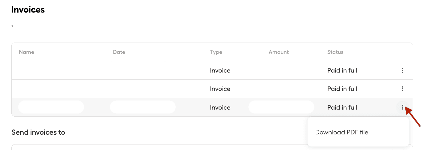 - So laden Sieeine Kopie Ihrer Rechnung oder Gutschrift herunter, scrollen Sie ganz nach rechts, wo Sie 3 vertikale Punkte finden