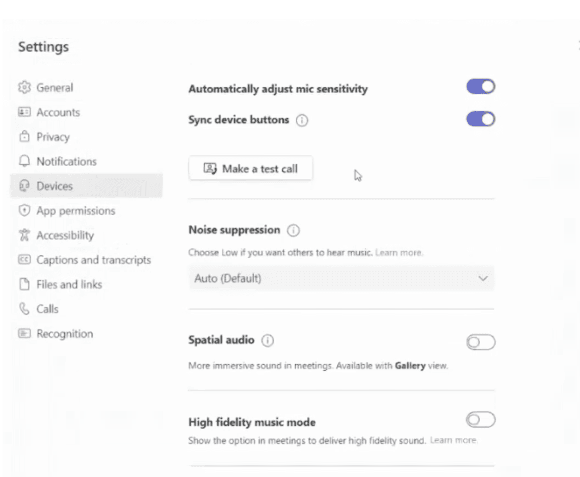 In Microsoft Teams ist die Einstellung Sync device buttons standardmäßig aktiviert. Dies kann zu Störungen zwischen den Anrufsteuerungen in Teams und Aircall führen.