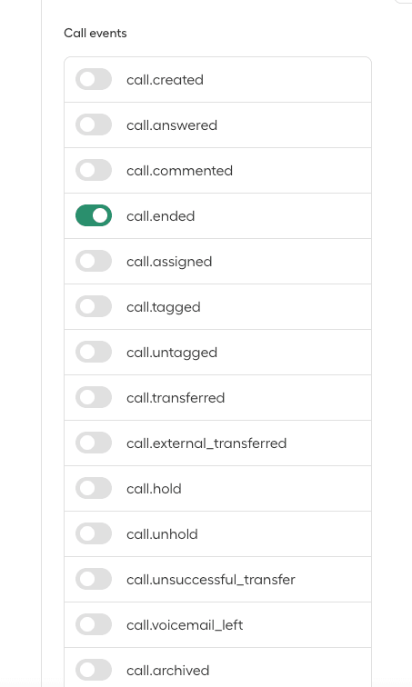 - Aktivieren Sie unter Ereignisse nur call.ended