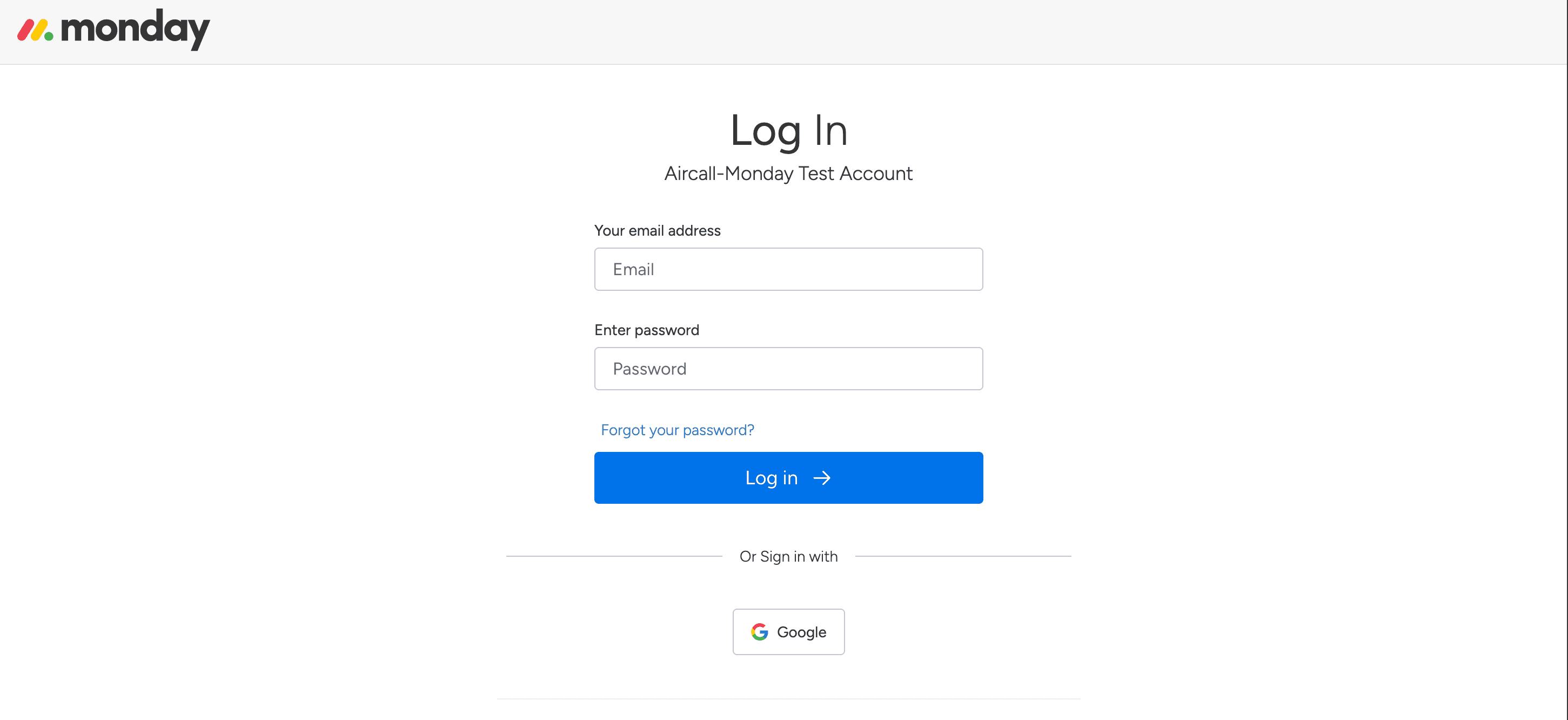 WICHTIG: Voraussetzungen: Sie müssen sowohl in Aircall als auch in monday.com Administratorrechte besitzen und in Ihrem monday.com-Konto die Berechtigung haben, "Boards zu erstellen". Weitere Informationen finden Sie im Artikel "Voraussetzungen für die Installation der monday.com V2 Integration".