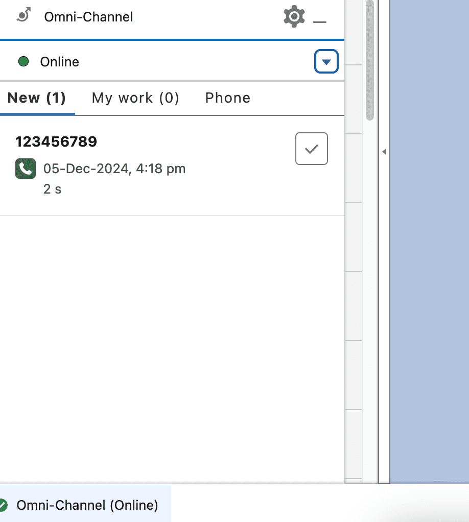 - Der Agent erhält eine Benachrichtigung über einen eingehenden Anruf in der Salesforce-Konsole.