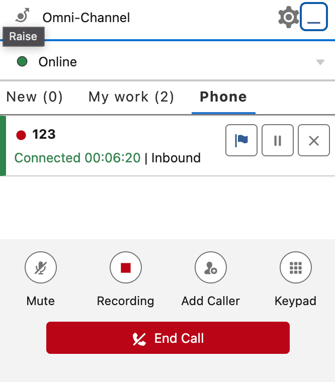 Das Salesforce SCV (Service Cloud Voice) Omni-Widget enthält ein integriertes Softphone, das es Agenten ermöglicht, Anrufe direkt innerhalb von Salesforce zu bearbeiten. Dieser Artikel gibt einen Überblick über die verfügbaren Bedienelemente während eines Anrufs und beschreibt die Benutzererfahrung sowie das technische Verhalten beim Tätigen, Empfangen und Verwalten von Anrufen über die Omni-Widget-Oberfläche.