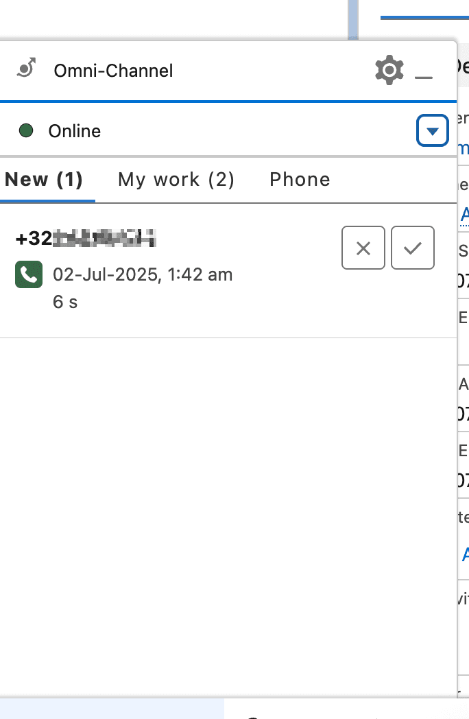 Die Benutzeroberfläche flackert, das Omni-Channel-Panel wird beim Zusammenführen der Anrufe kurz weiß.