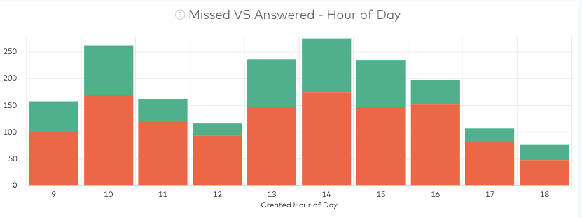 This graph is the distribution of Inbound calls per hour of the day and is divided between answered and missed calls.