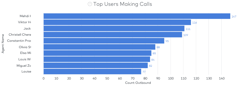 This graph shows the top ten users making outbound calls.