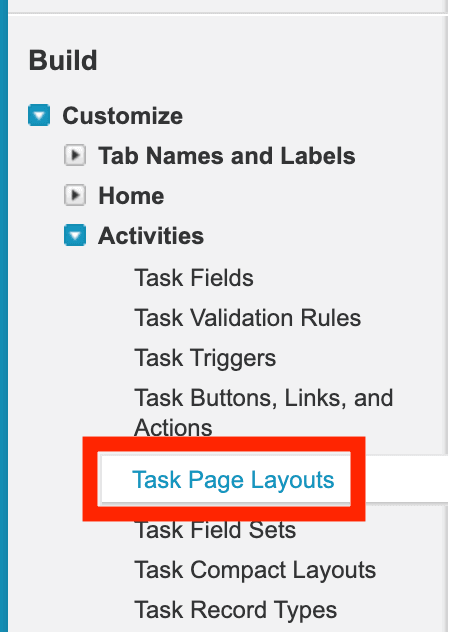 On the Task page, click Page Layouts, then Task Layout.