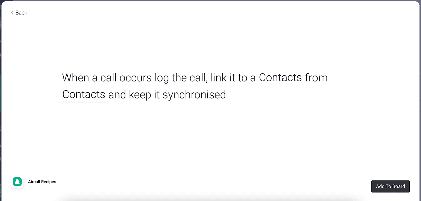 Important: Install the Call Logging recipe only after your Aircall Calls board is connected to your phone number board.