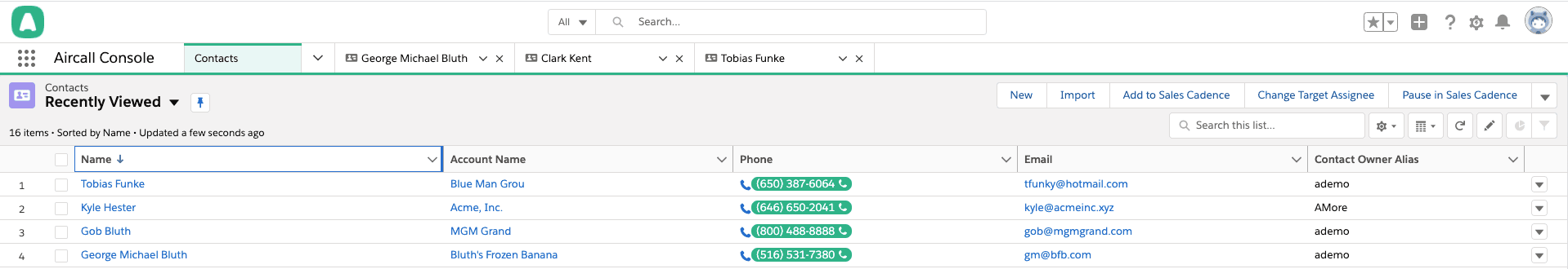 Clicking the phone number will open the number directly in your Aircall CTI.