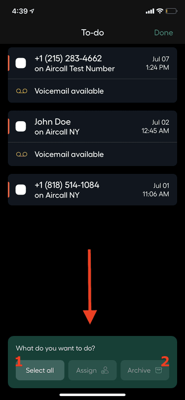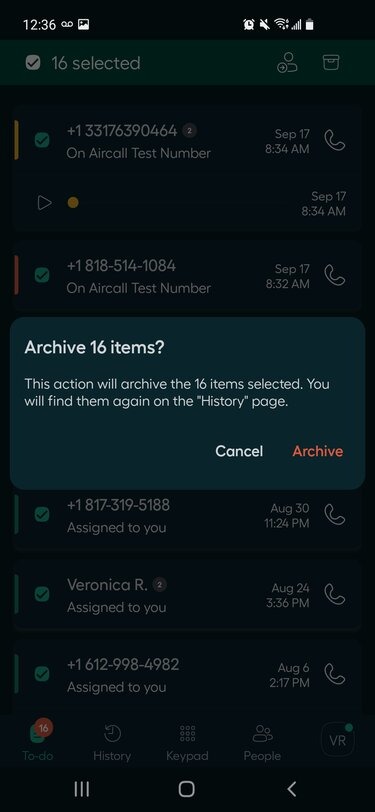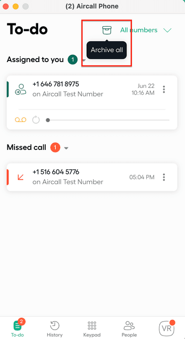 If you have too many missed or assigned calls in the To-Do section of your Phone, you can take advantage of using the Archive All button located at the top of the page.