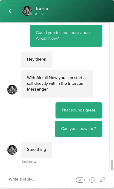 When chatting with a customer in Intercom Messenger, you can initiate a call instantly.