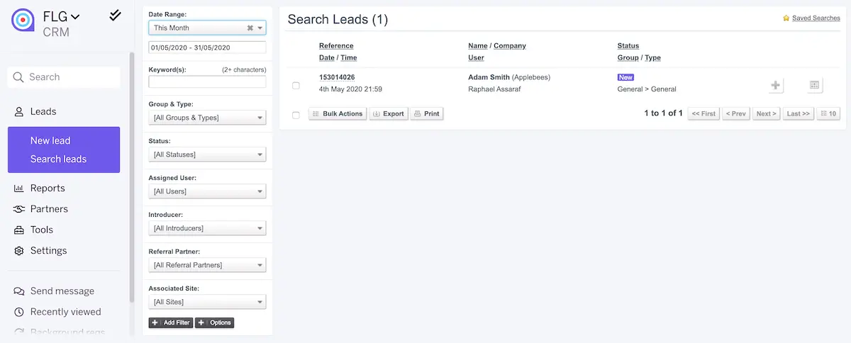 - Log in to your FLG CRM account.