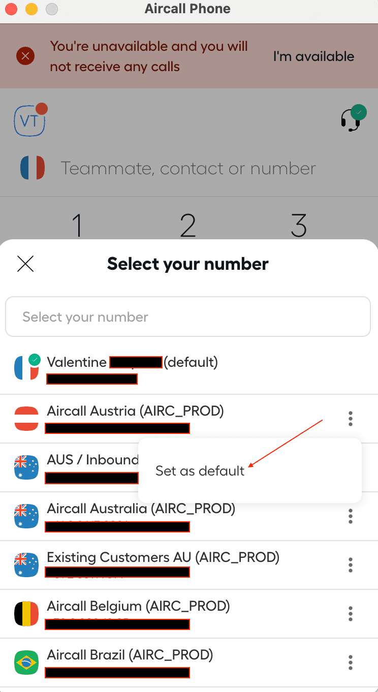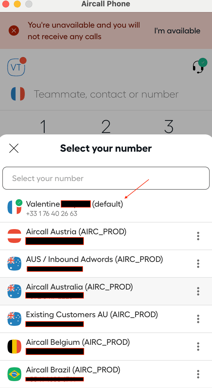 If you’d like to set a default country calling code, you can do so from the same section of the Aircall Phone.