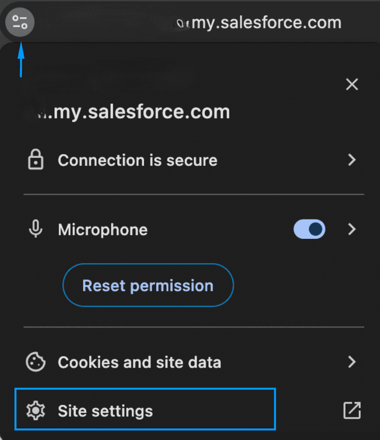 While in Salesforce, click the lock icon or permissions icon next to the browser URL.