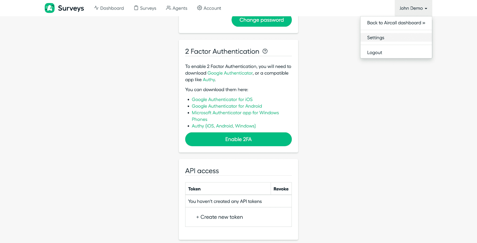 - Open your Aircall Surveys account.
