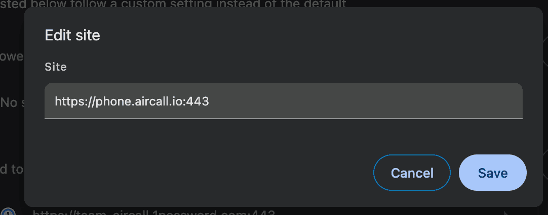 Important: Chrome applies permission settings at the domain level. This means that any permission you configure for a domain such as .aircall.io or .google.com will apply across all pages within that domain.