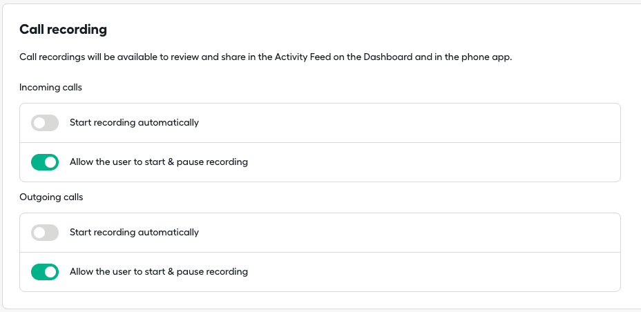 - Toggle the recording settings per number based on your needs.