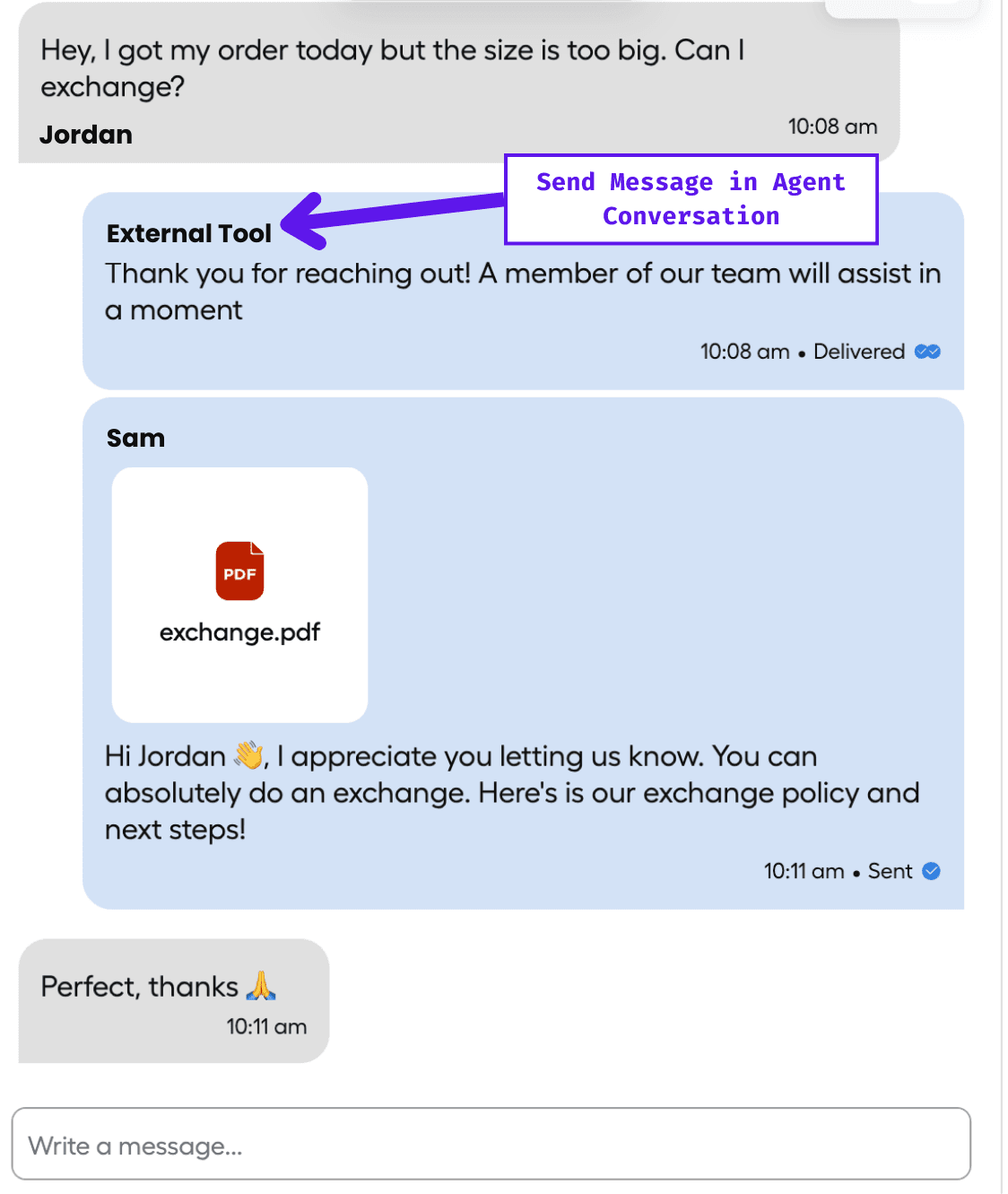 • Option 2: Send Message in Agent Conversation