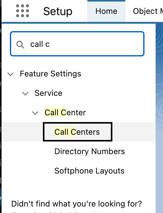 1. Abre el nuevo Centro de Llamadas Aircall CTI importado en la Configuración de Salesforce.
