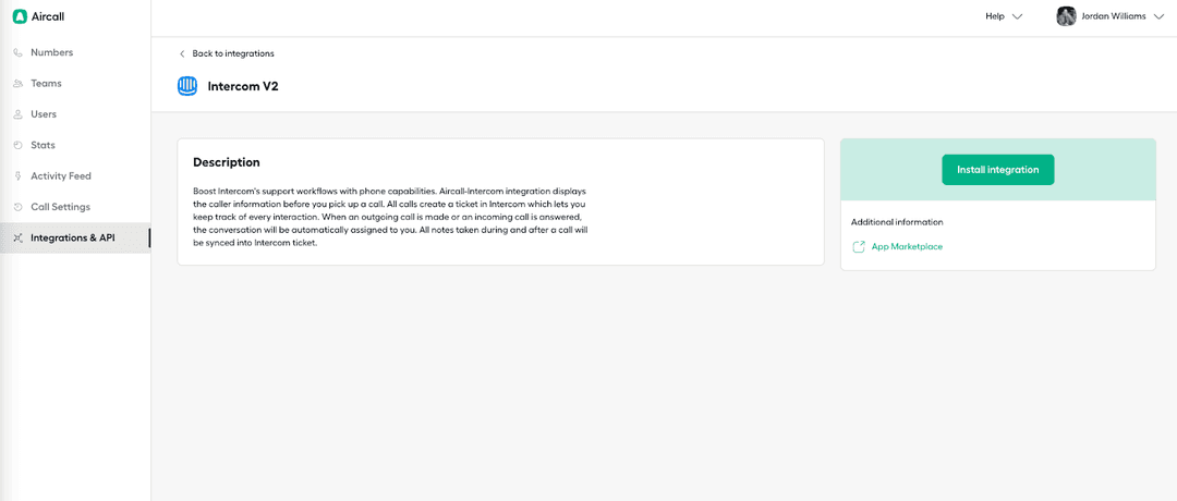 Intercom le ayuda a construir mejores relaciones con los clientes con mensajería escalable que proporciona una experiencia más personal para usted y sus clientes. Ofreciendo productos para ventas, marketing & soporte para conectar con los clientes y crecer más rápido. Por suerte, configurar la integración Intercom de Aircall es muy sencillo.