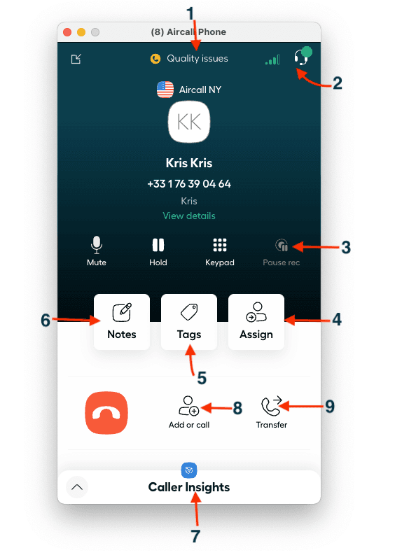 📚 Por favor, visite este artículo para aprender más sobre las notificaciones de calidad de llamada en el teléfono de Aircall