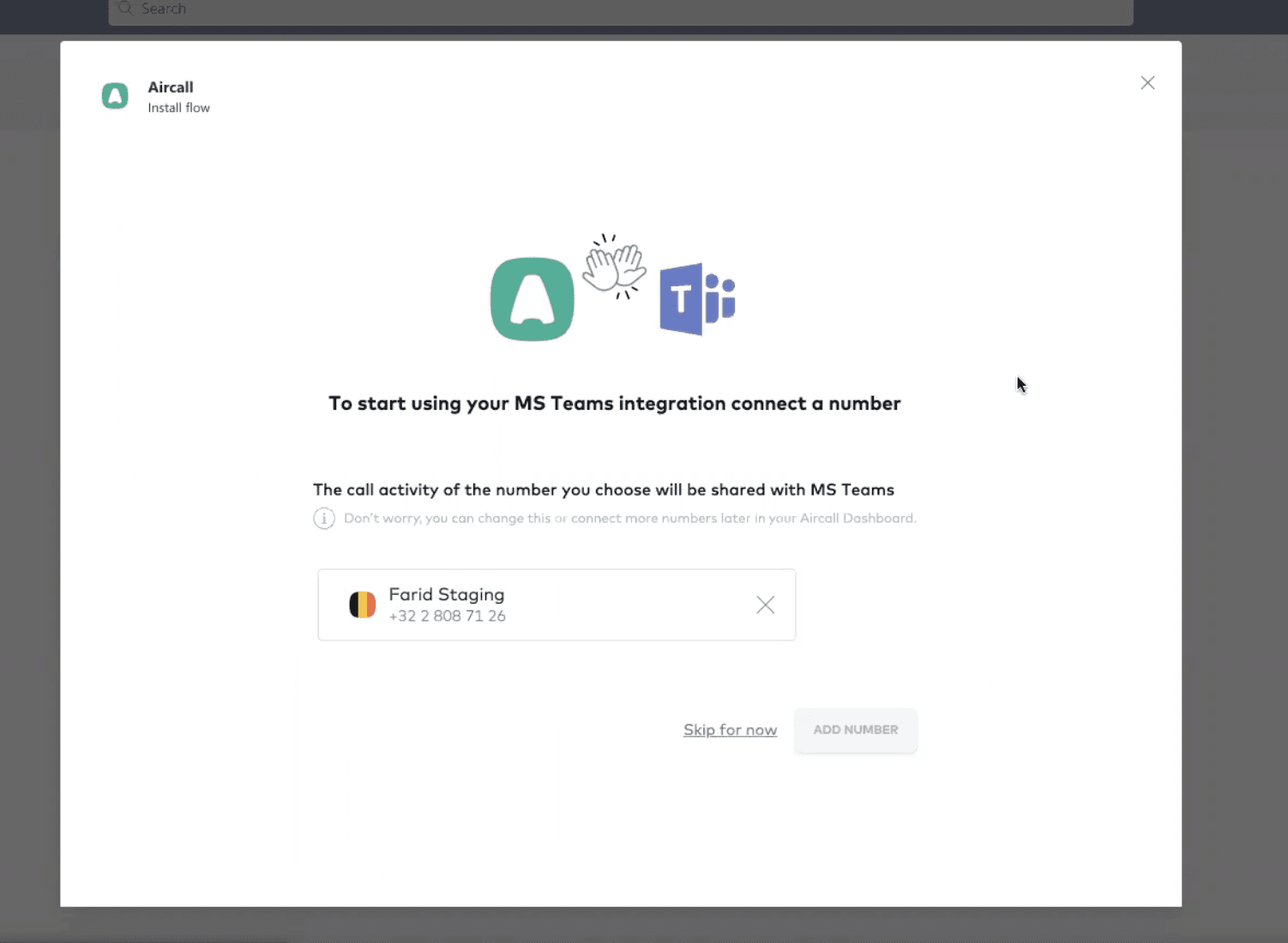 Autoriza a Microsoft Teams para acceder a tu cuenta de Aircall.