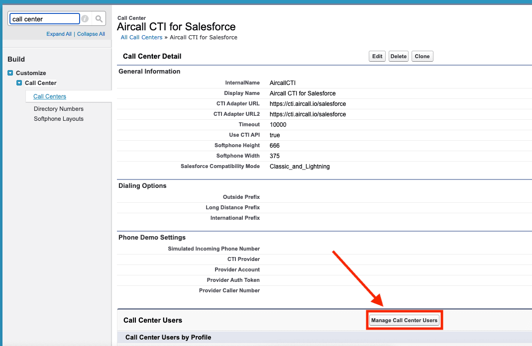 Debes configurar un diseño de softphone para que el Aircall CTI aparezca en la interfaz de Salesforce Classic.