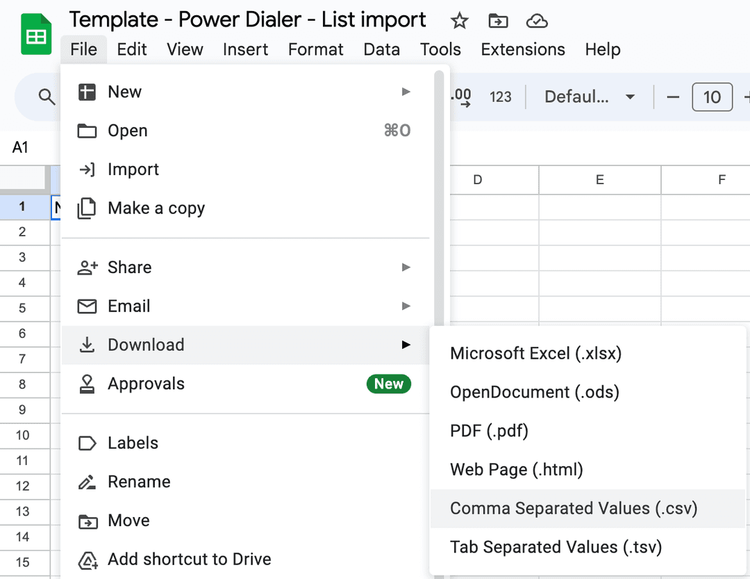 ⚠️ Tenga en cuenta: si usa Google Sheets, asegúrese de descargar su lista en formato (.csv).