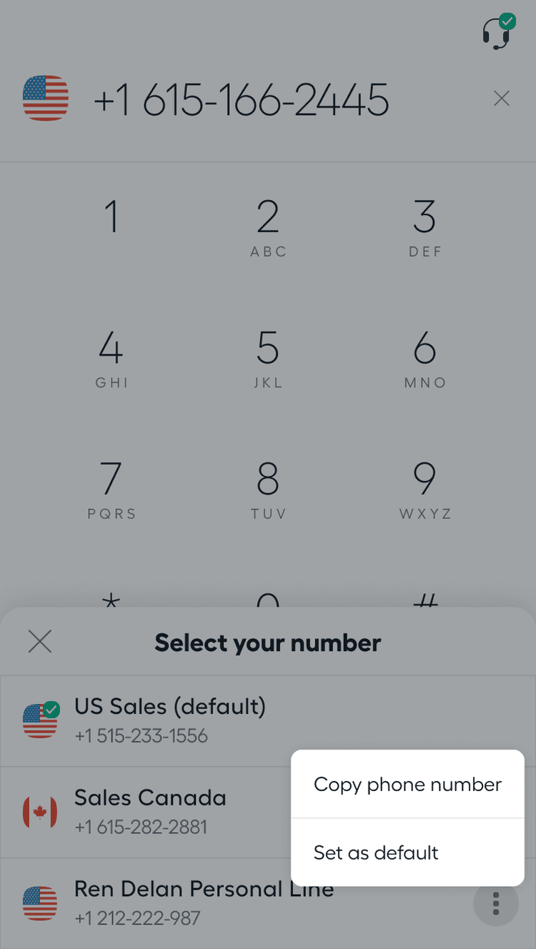 Si estás asignado a múltiples líneas telefónicas, elegir un número predeterminado desde el cual llamar garantizará consistencia con tus clientes.