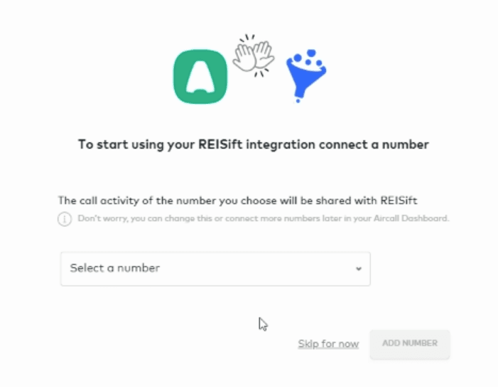 Importante: Debe seleccionarse al menos un número para que la actividad de llamadas se registre en REISift. Puedes añadir o eliminar números más adelante en el Panel de Aircall.