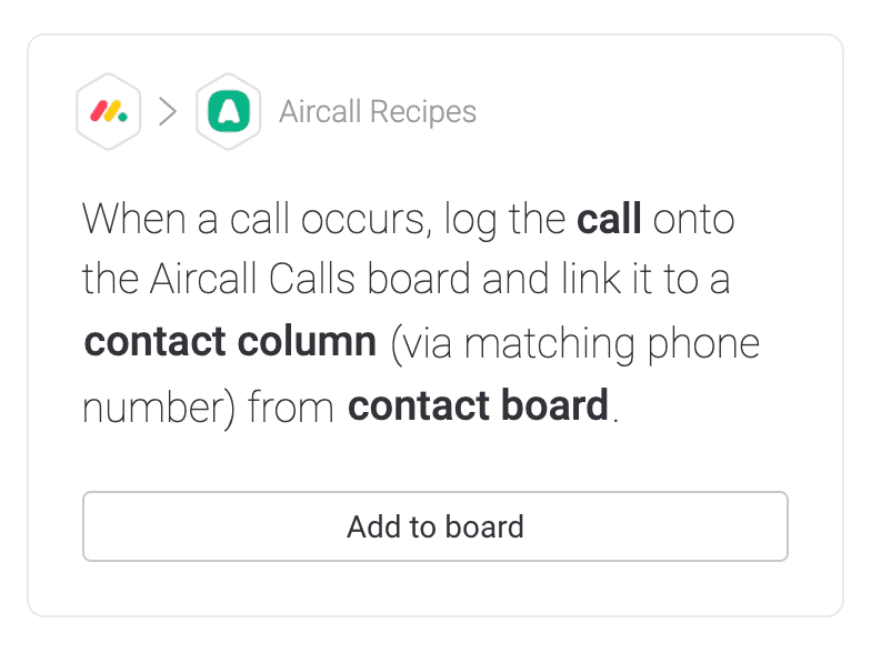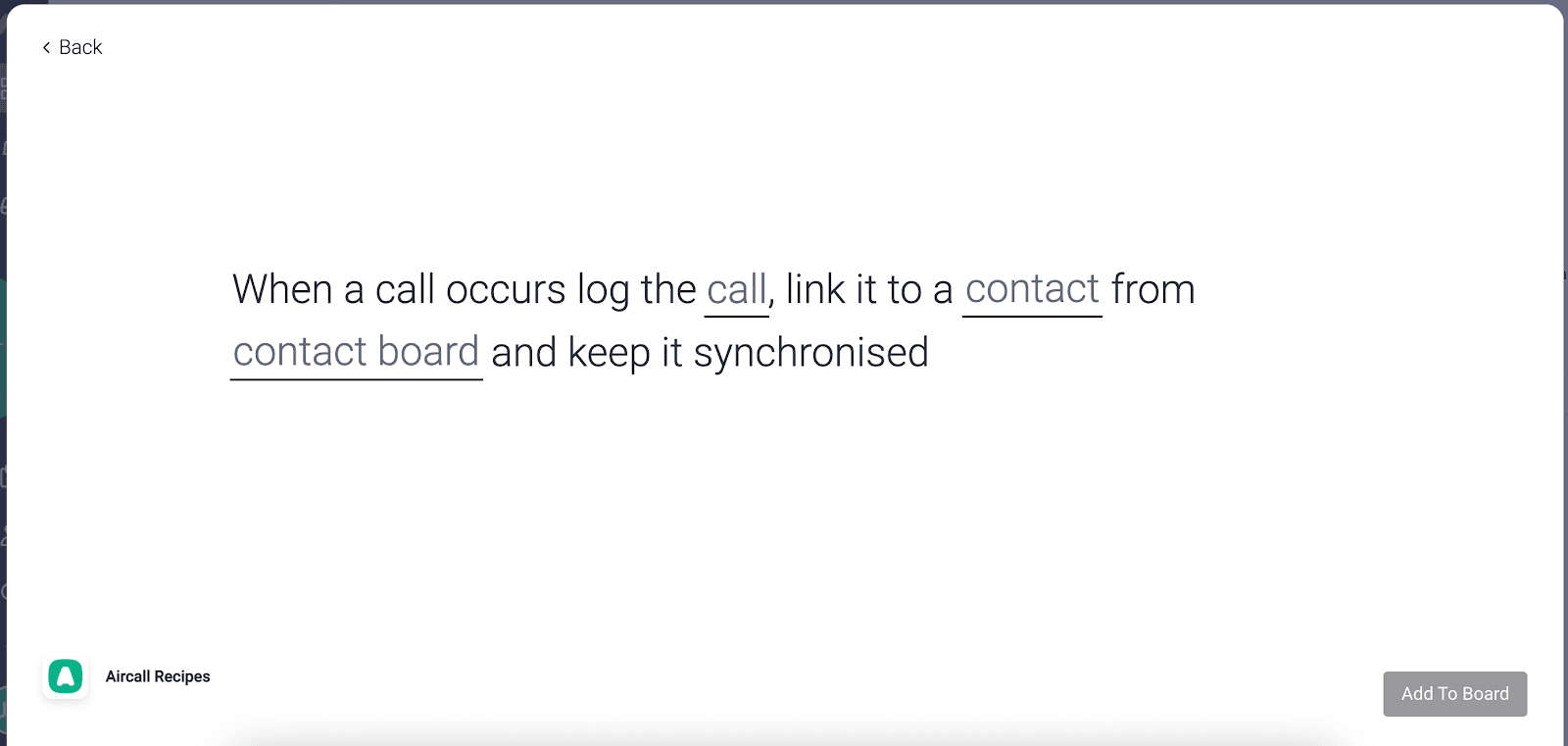 Importante: Instala la receta de Registro de llamadas solo después de que tu tablero de Llamadas de Aircall esté conectado a tu tablero de números de teléfono.