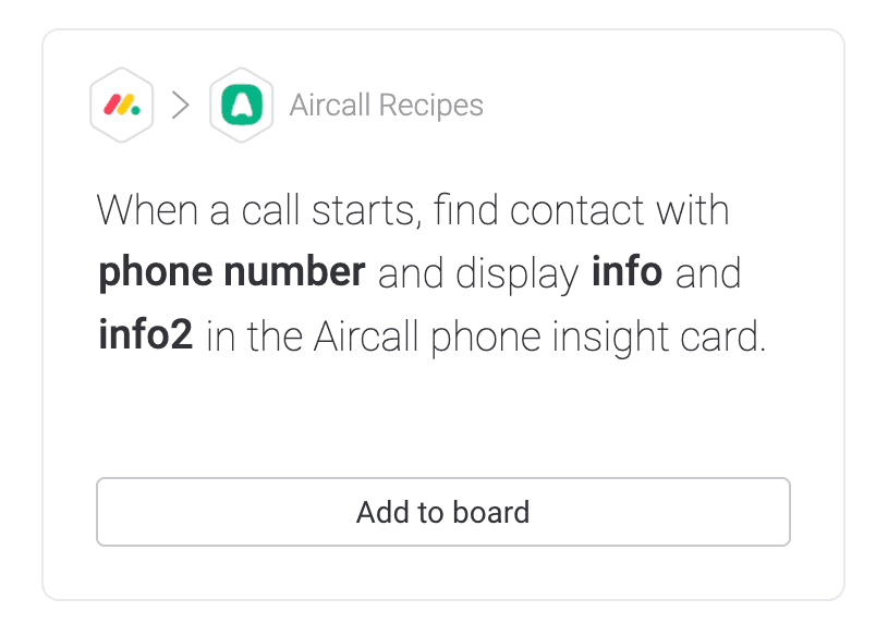 - Busca Aircall y luego selecciona la receta de Insight Card.