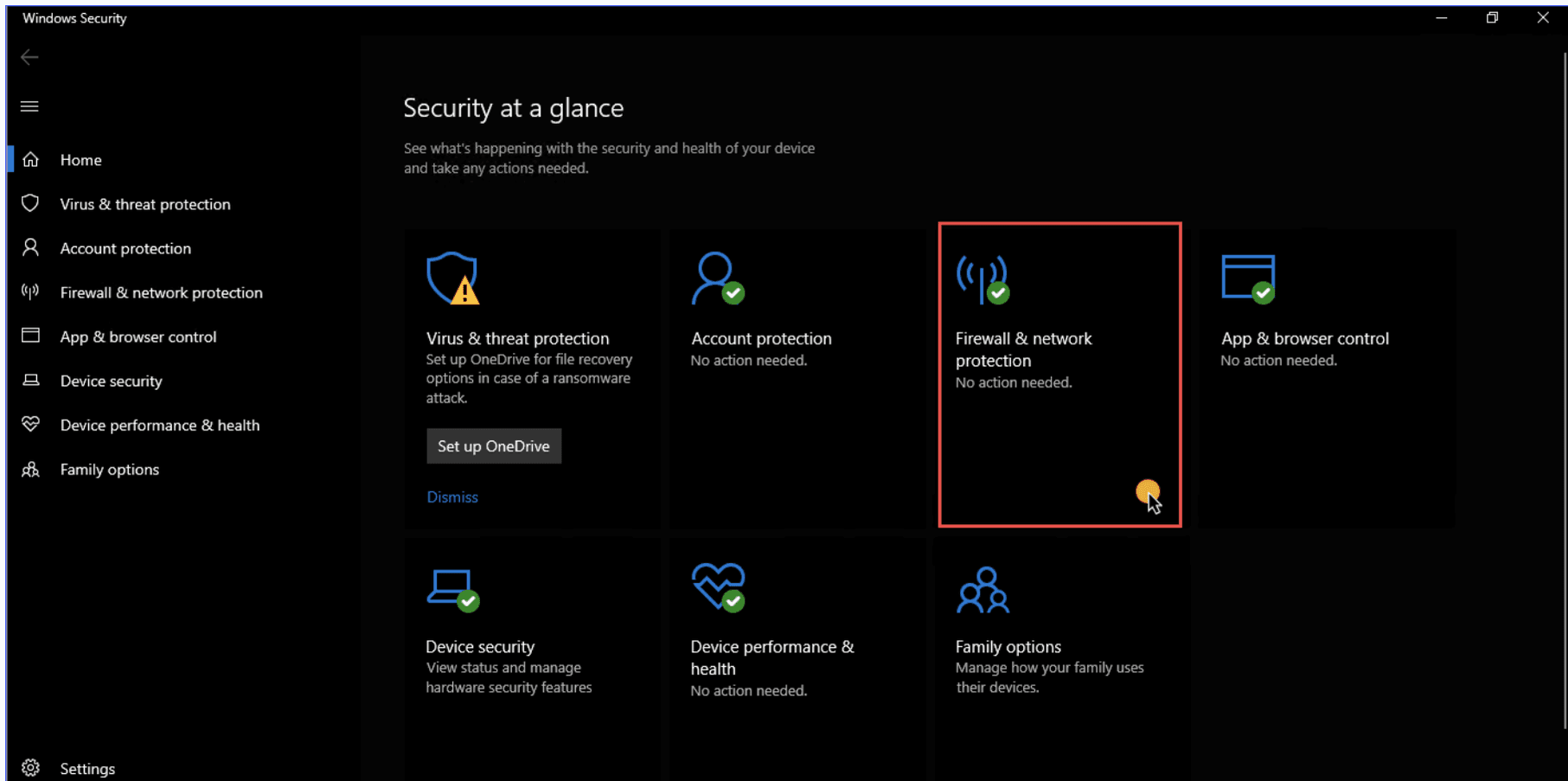 - Haz clic en Protección contra firewall y red.