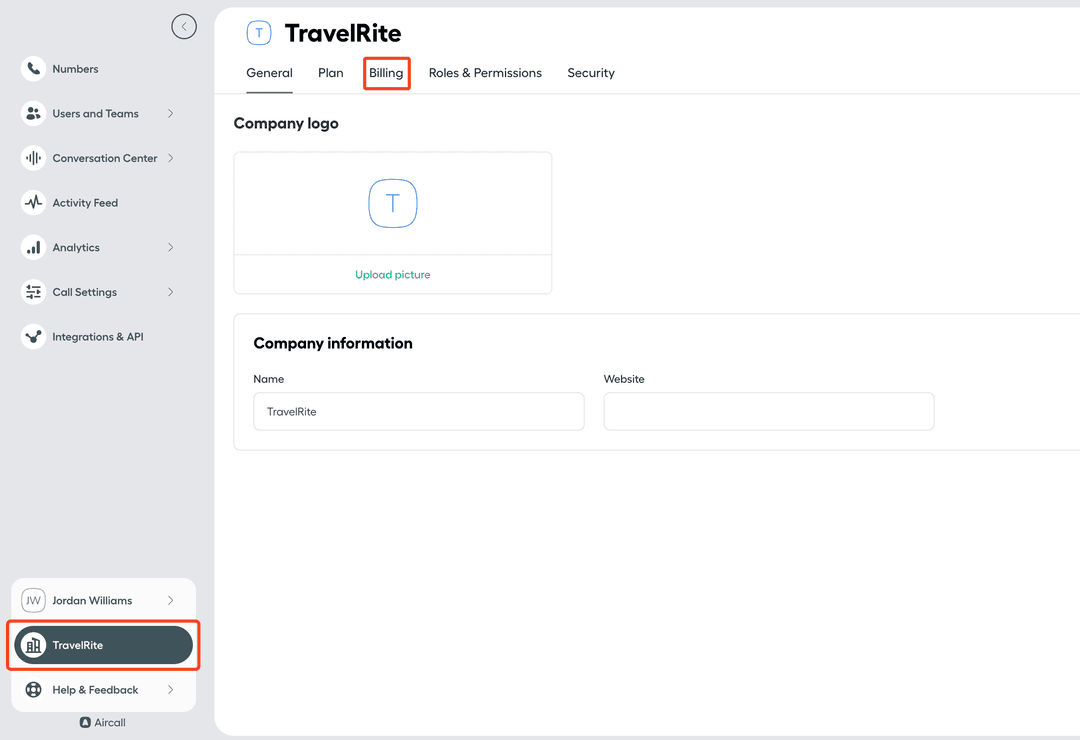 - Haga clic en el nombre de su empresa en la esquina inferior izquierda