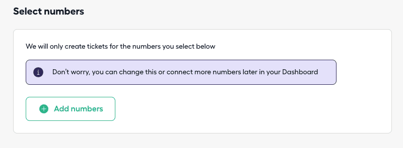 Remarque: Vous pouvez ignorer la sélection de numéros lors de l’installation, mais au moins un numéro doit être ajouté pour que l’activité des appels soit enregistrée dans Zendesk Sell. Vous pouvez ajouter ou supprimer des numéros ultérieurement depuis le Tableau de bord Aircall.
