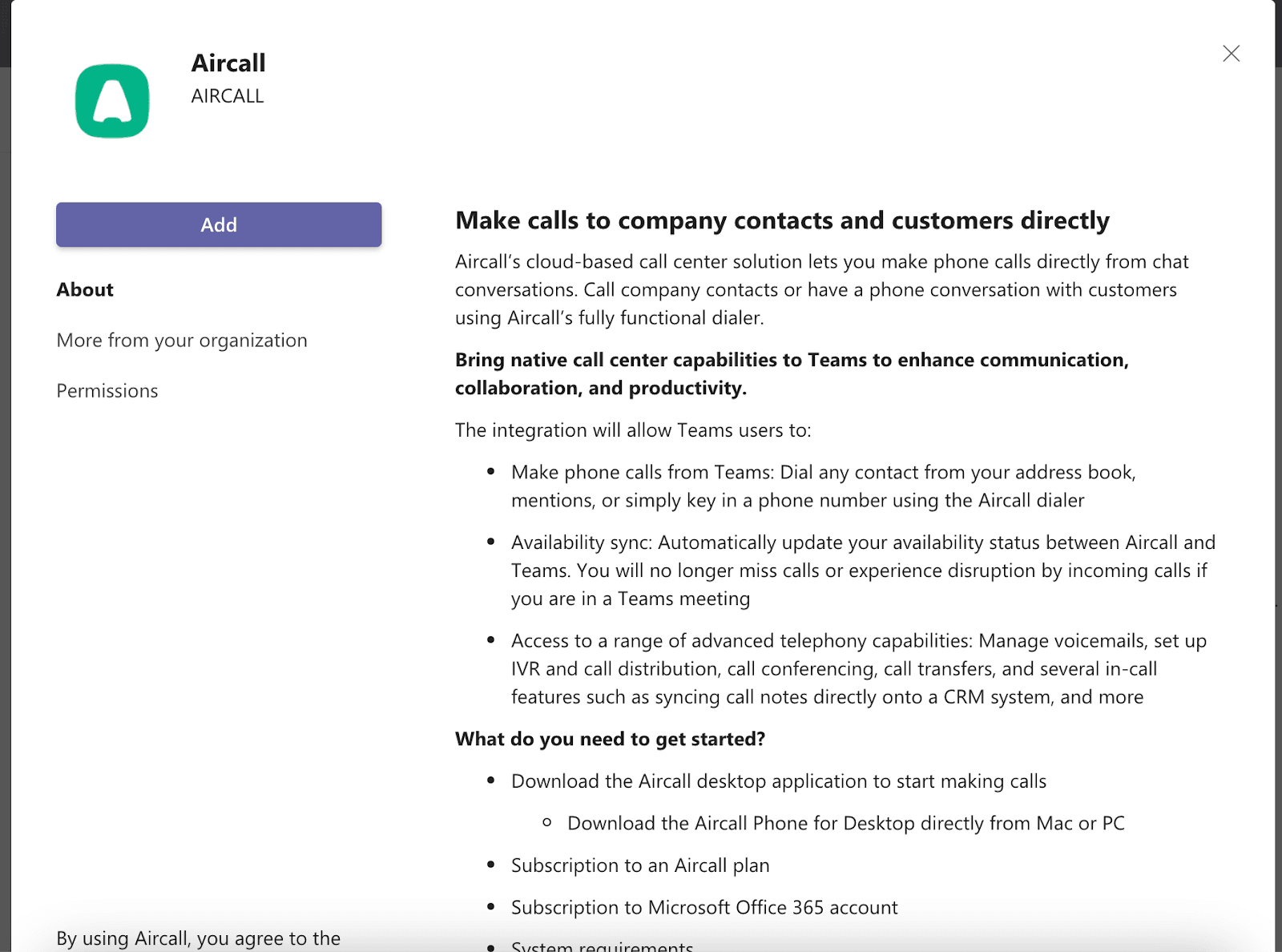 1. Installer Aircall dans Microsoft Teams
