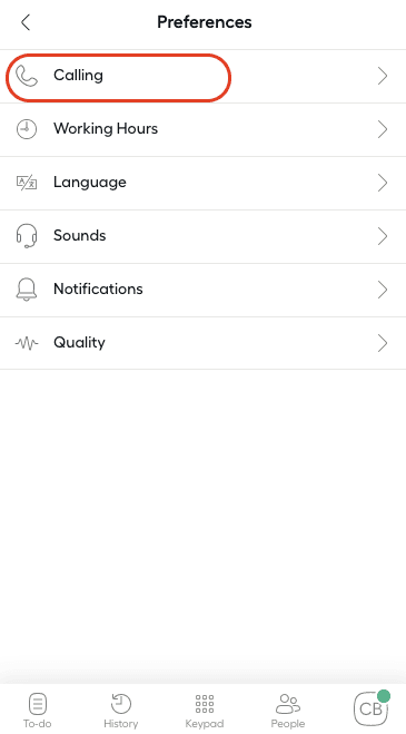 • Dans le menu Préférences, sélectionnez Appels