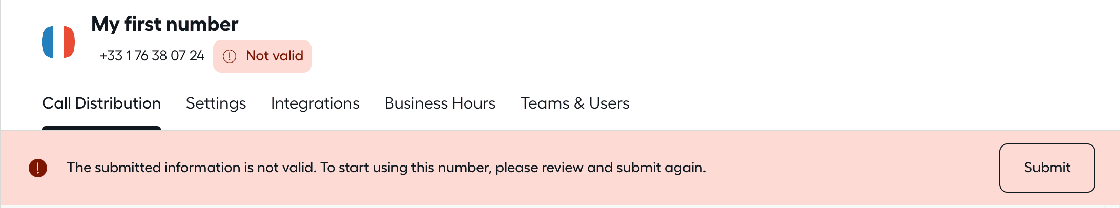 Lorsqu'un numéro est en attente de vérification, vous ne pourrez pas l'utiliser avec Aircall.