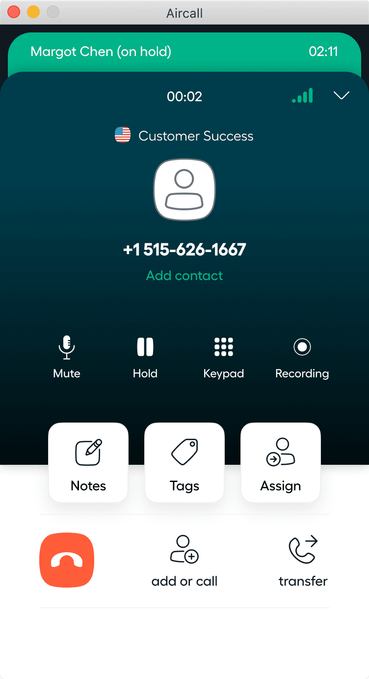 Lorsque vous êtes en communication avec un client, il peut être nécessaire de contacter une autre personne pendant l’appel pour vérifier certaines informations. Dans Aircall, vous pouvez utiliser la fonction d’appel en parallèle qui vous permet de mettre un client en attente, de lancer un appel sortant vers un autre contact, puis de basculer instantanément entre les deux conversations selon les besoins.