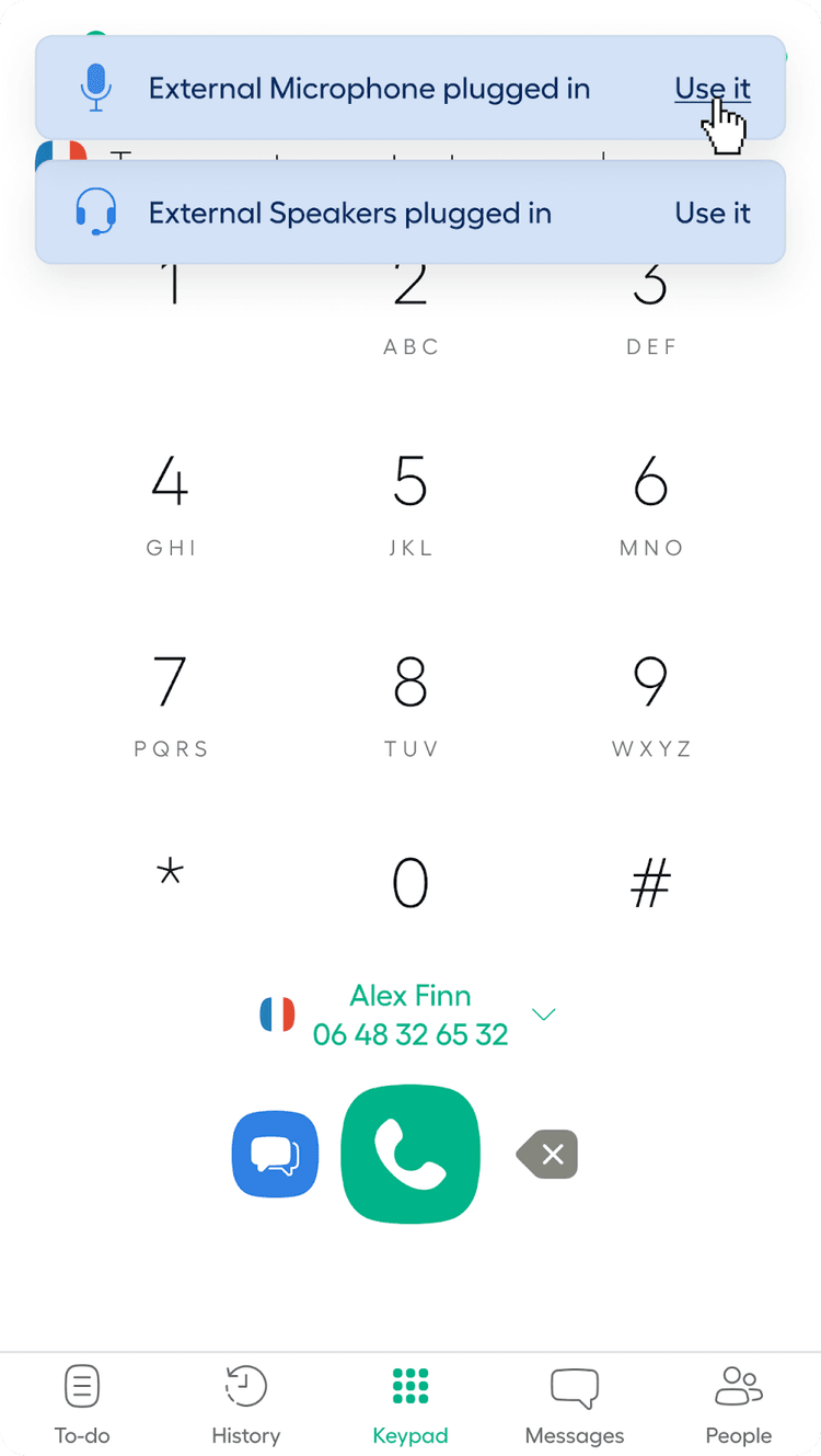 Lorsque vous connectez un nouveau casque, Aircall vous invite à le sélectionner. Une fois que vous choisissez L’utiliser, le périphérique est enregistré dans vos paramètres Aircall et sera utilisé automatiquement pour les prochains appels.