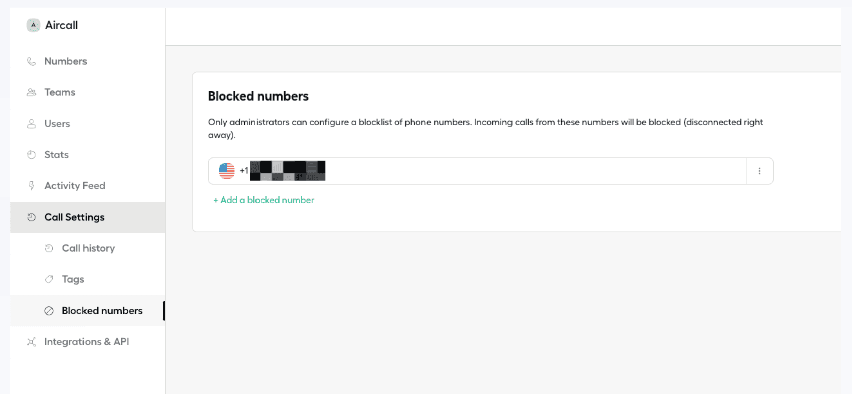 - Pour débloquer un numéro dans Aircall, un administrateur peut se connecter au tableau de bord Aircall et supprimer le numéro de la liste des numéros bloqués