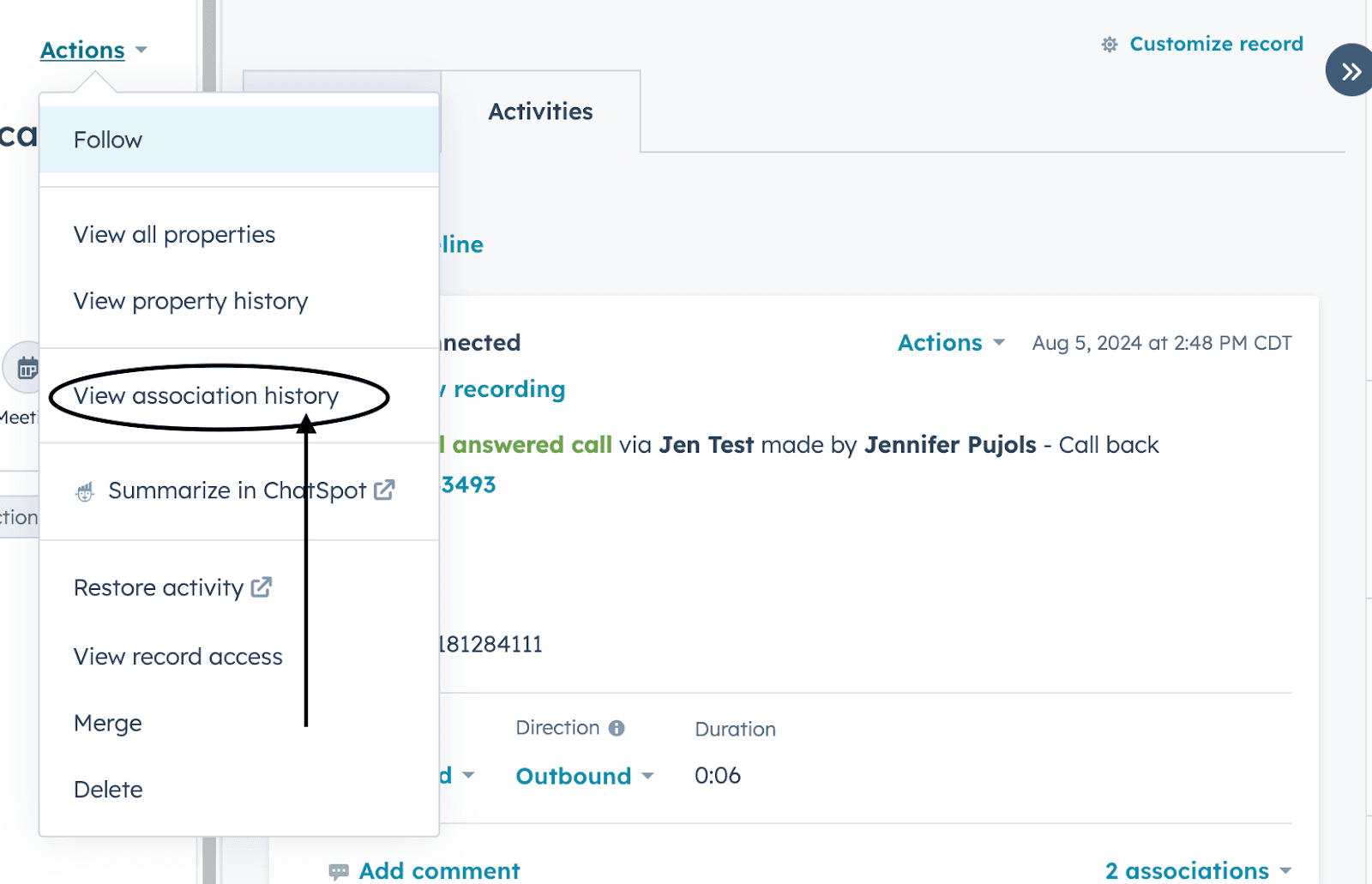 HubSpot propose une fonctionnalité Associations automatiques qui peut automatiquement lier les appels à plusieurs objets.