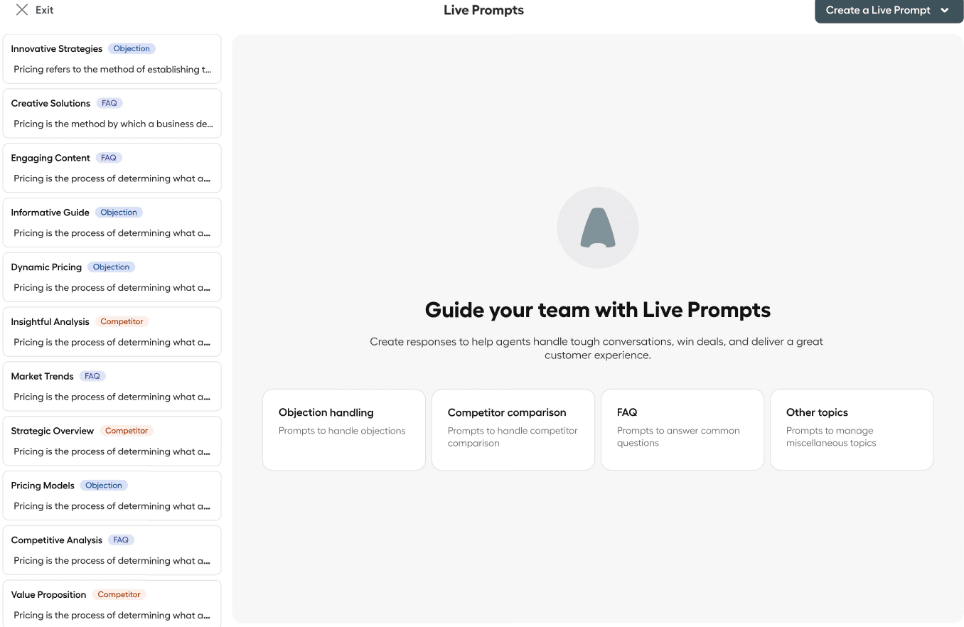 Inside Manage Live Prompts: